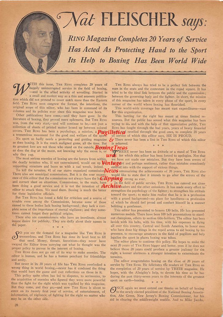Vintage Original Boxing News or Publication clipping