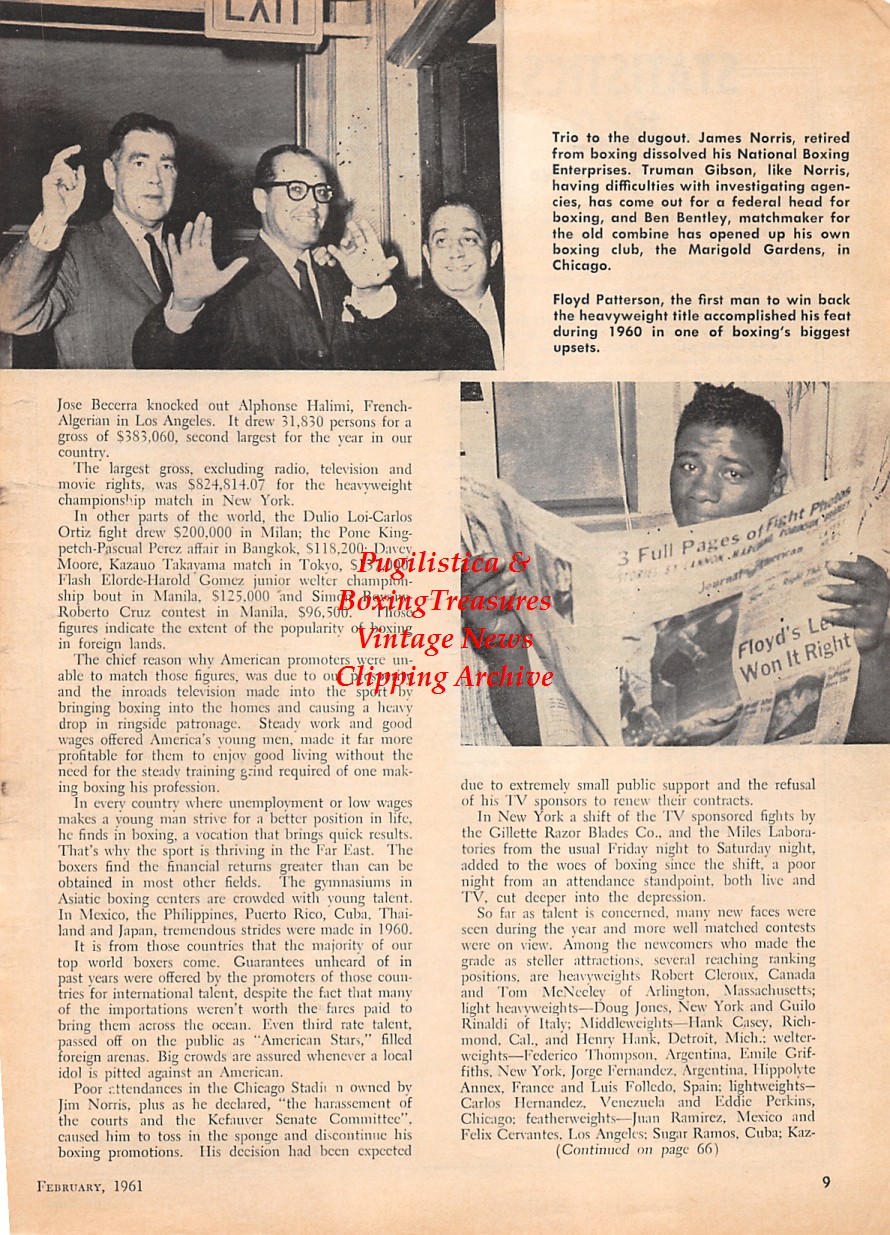 Boxing News Clipping #1584 - James D. Norris, Truman Gibson, Ben Bentley, Floyd Patterson, Statistics for the Year 1960