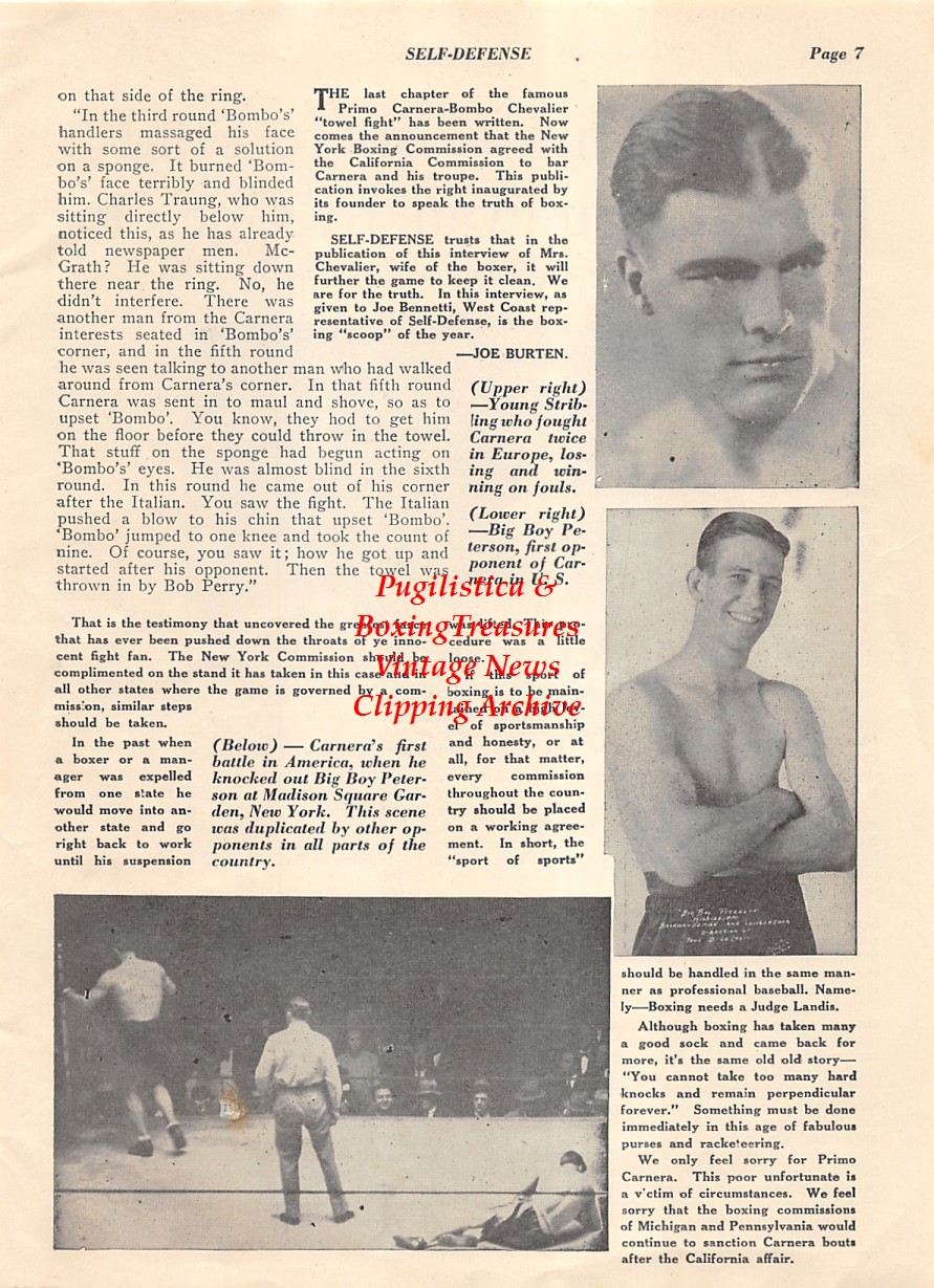 Boxing News Clipping #1985 - Young Stribling, Primo Carnera vs. Big Boy Peterson, James J. Corbett, Joe Choynski, Jim Jeffries, Billy Jordan