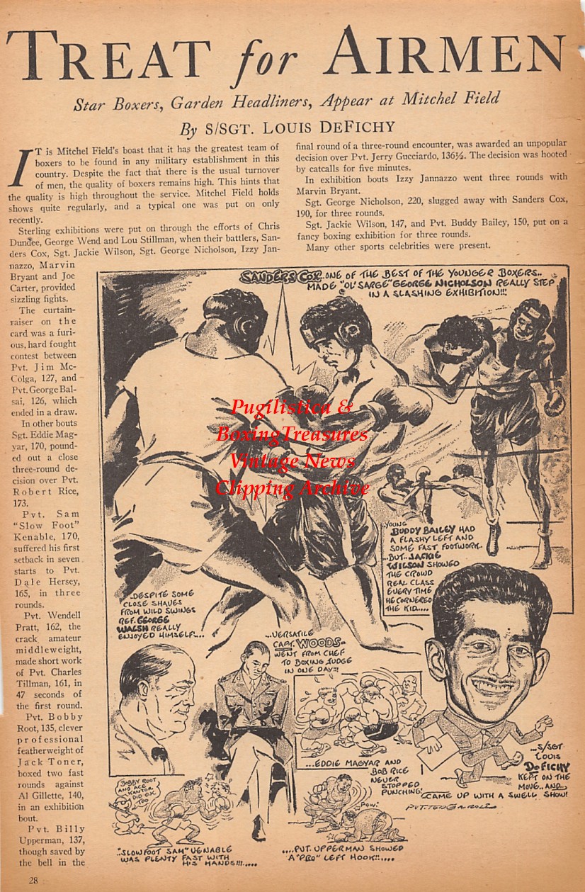 Boxing News Clipping #2372 - Military Boxing Cartoon by Ted Carroll, Sanders Cox, George Nicholson, Louis DeFichy, George Walsh, Eddie Magyar, Buddy Bailey, Jackie Wilson