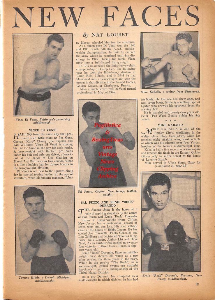 Boxing News Clipping #377 - Vince DiVenti, Mike Kaballa, Sal Puzzo, Tommy Kiddy, Ernie Durando, Frankie Genaro