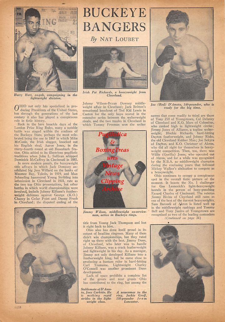 Boxing News Clipping #442 - Harry Hart, Irish Pat Richards, Joe D'Amato, Jimmy Wilson, Joey Karkido, Jackie Groff, Tippy Larkin, Gus Lesnevich
