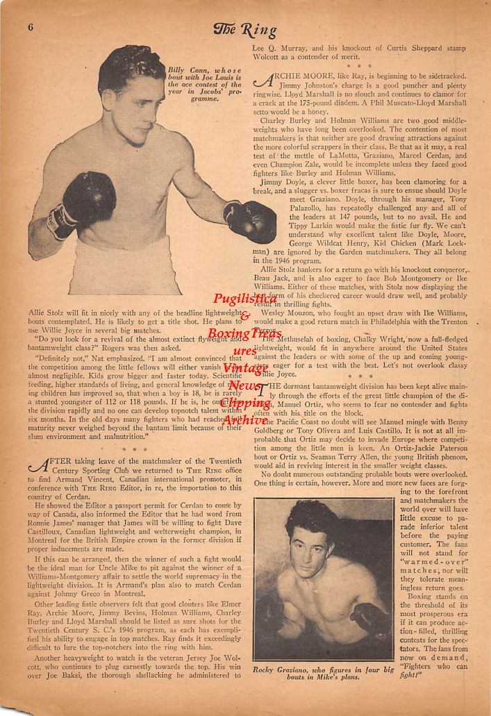 Boxing News Clipping #639 - Ernie Roderick, Willie Joyce, Ike Williams, Tony Janiro, Billy Conn, Rocky Graziano