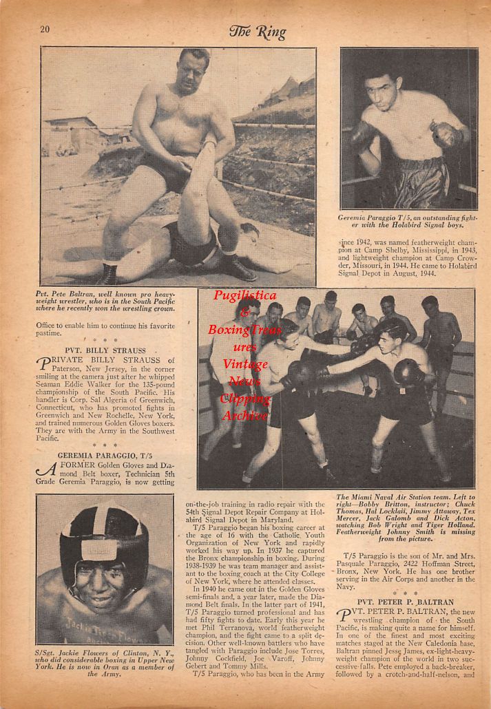 Boxing News Clipping #722 - Military Boxers, Joseph Rubino, Johnny Horstman, Pinky Godel, Rocco Lake, Billy Strauss, Pete Baltran, Geremia Paraggio, Jackie Flowers and others