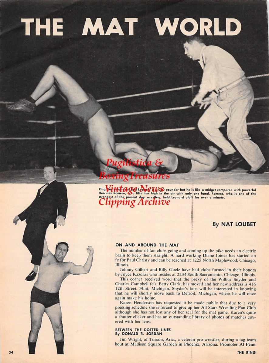 Wrestlers, Fight Figures and Others pictured - Hercules Romero listing Ring correspondent Bob Leonard
